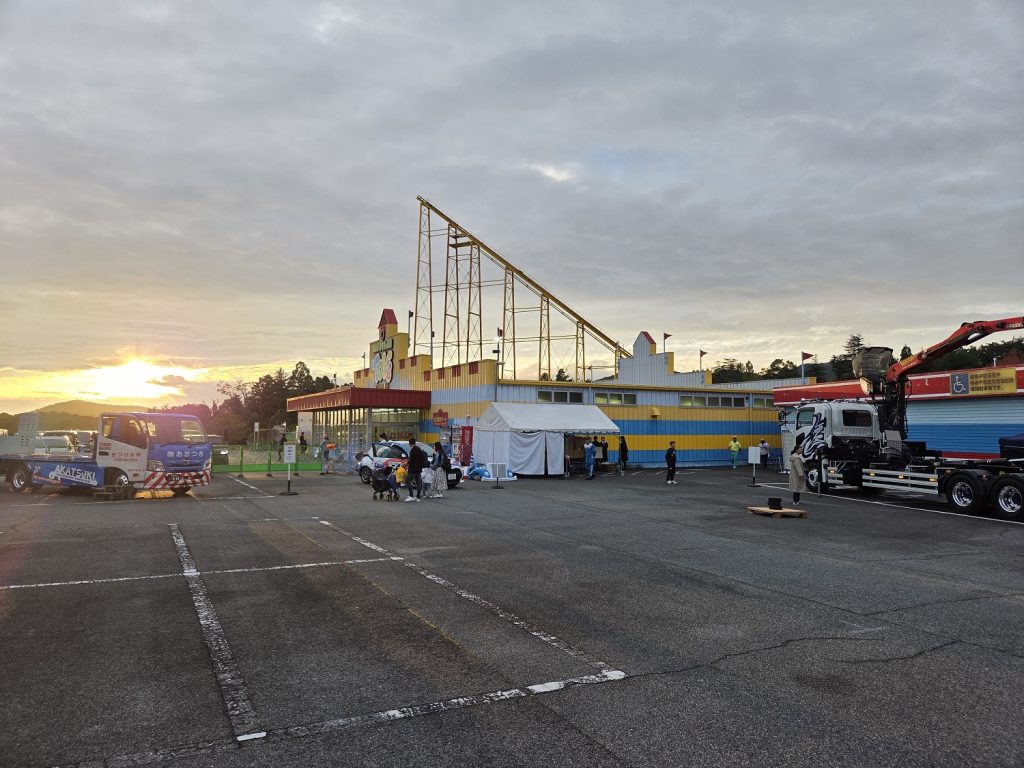 前日乗り込みの様子です。今年は第1駐車場で展示することとなりました。
